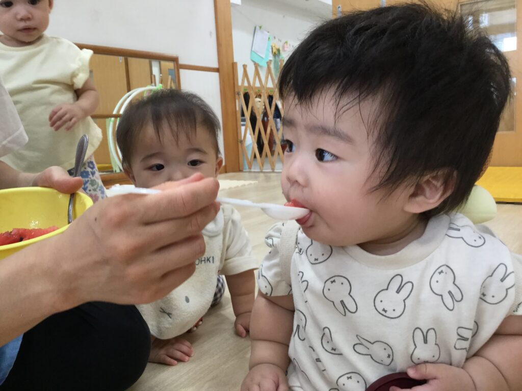 ここ数年、園でスイカ割りをしていなかったので子ども達も大興奮!!