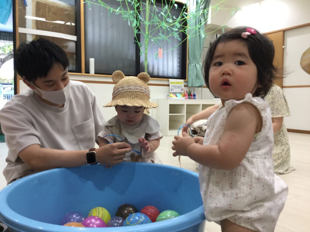 ゲームコーナーには「的当て」「たこやきビンゴ」「わなげ」「ヨーヨー釣り&金魚すくい」を準備!子ども達が興味を持って遊んでくれている姿に保育者達もとても嬉しい気持ちになりました☆