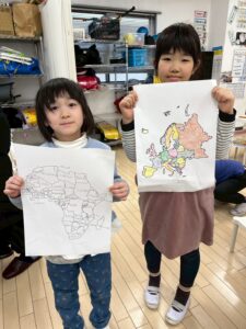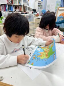 仕上げや国名の記入、タイトル作成まで丁寧に進めました。