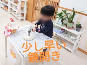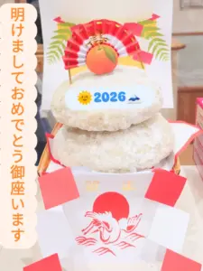 年末に子どもたちがついたお餅で作った鏡餅です✨