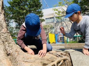 2年生以上の子が折り紙を、宝に見立て隠していました!