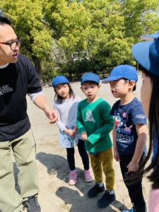 当てるゲームです。1年生が2年生以上の子と関わりが持てるように、1年生の子が中心にいるときは