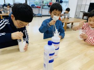 毎年4月は恒例になりつつある、スライムの理科実験を今年も行いました!!