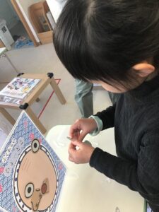 お正月遊びの紹介の後は、各クラス別に「福笑い」を楽しみました。