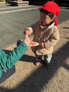 お正月ということで正月遊びをいくつかピックアップして紹介し、近くの公園で実際に遊んでみてもらいました。