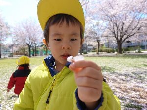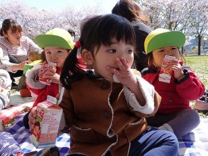 公園に着いたら桜の木の下でおやつを食べたよ!