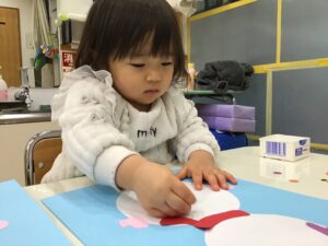 小さなシールも自分で貼れるようになりました。