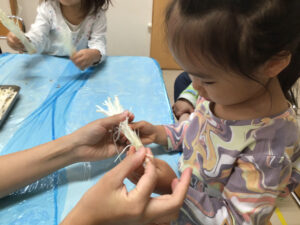 昨日、そらぐみさんは「きのこを割く」というクッキングを楽しみました。