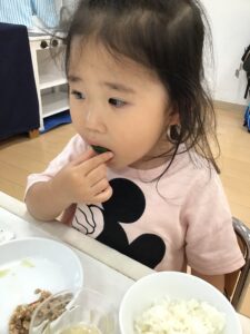 みんなで叩いたきゅうりは美味しかったようで、普段あまりお野菜を好んで食べない子も食べられており、やってよかったなぁと思いました。