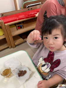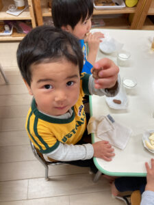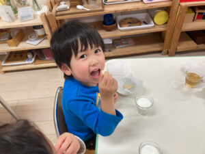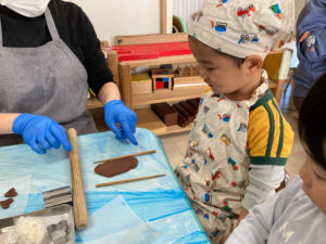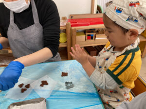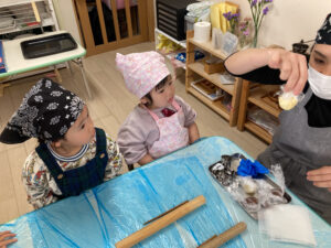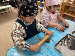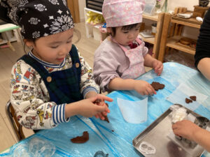 昨日、2歳児クラスではクッキー作りを楽しみました。
