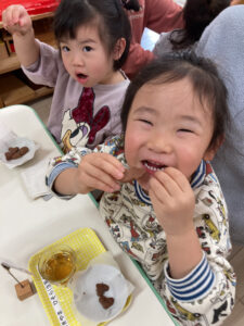 午睡時間中に調理室で焼いてもらい、