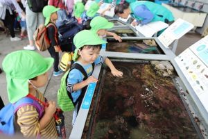 うになどを手で触れるコーナーではおそるおそる手を伸ばす子や、怖いもの知らずで手を伸ばす子も。性格が出ていました。