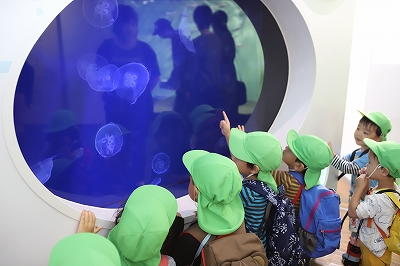 エレベーターで降りると、「なんだかお魚の匂いがする」と敏感に反応していました。沢山の魚を前に大興奮の子どもたちは、思わず大きな声が出てしまっていました。(笑)