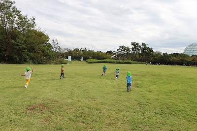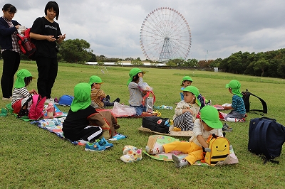 お弁当を食べてから広い広場を走り回って遊びました。(^^♪芝生の上でごろんとして空をみてみたり、鬼ごっこをしたり、帰る時間まで沢山遊びました。