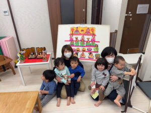 さて、園ではひな人形を飾って、日本文化に触れる機会をつくっています。