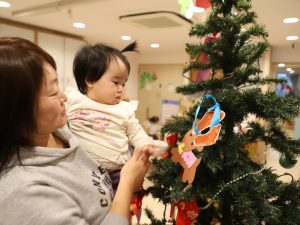 各クラスの製作の時間にオーナメント作りを行い、完成したのでクラスごとにツリーに飾り付けを行いました。