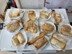 自分がつつんだものには紙に名前を書いて並べてあります。