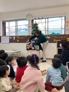 クリスマスの歌を歌ったり、ペープサートを見たり
