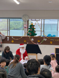 いつものクリスマス会に、今回は保護者の方達にも来ていただき、「おたのしみ会」として子ども達の発表も取り入れました。
