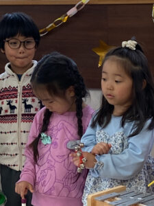 色々な楽器を使い、「ジングルベル」を演奏しました。