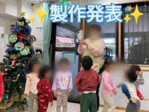 歌を歌い、製作発表をし、保育者が仮装したサンタが