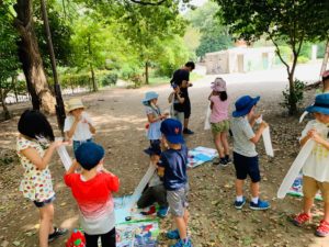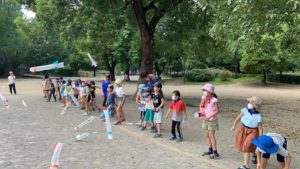 今回の理科実験は、戸山公園で同系列の学童である早稲田フロンティアキッズと合同で