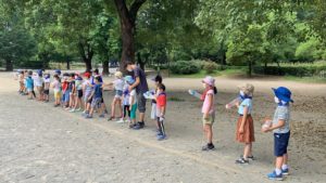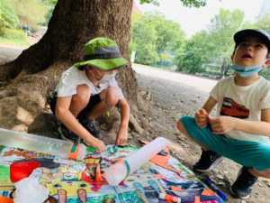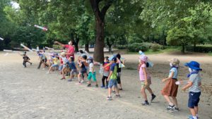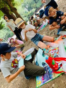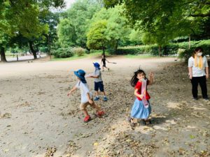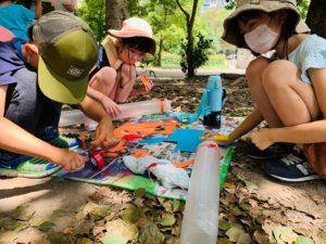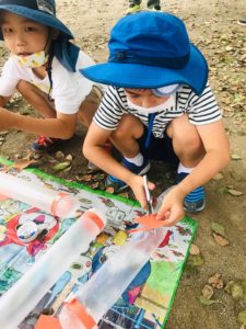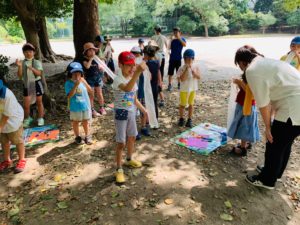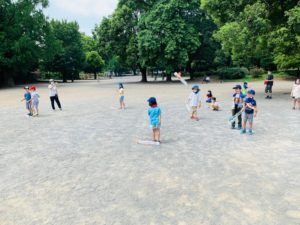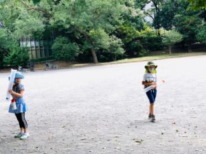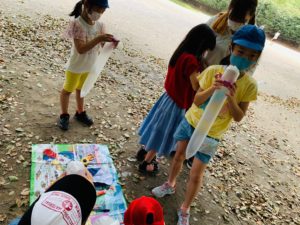 今回の理科実験は、戸山公園で同系列の学童である早稲田フロンティアキッズと合同で
