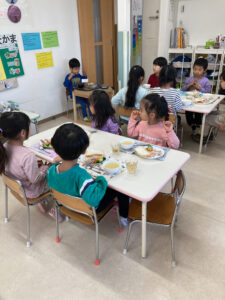みんなで美味しい食べ物に感謝して「いただきま~す!」