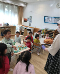 サンクスギビングとはどんな日なのかお話しすると興味深そうに聞く子どもたち。