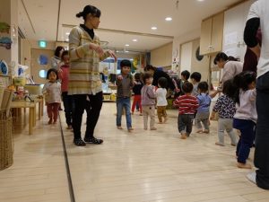 ピアノの音色やリズムに合わせて好きな動物になってみたり、お友だちと手を繋いで歩いてみたり、とっても楽しそう♪
