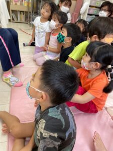 次はあいさつです。「こんにちは」は「アニョンハセヨ」、「さようなら」は「アニョンヒカセヨ」 みんなで大合唱しました。