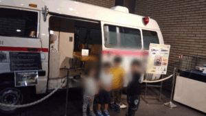 消防車の近くに行きピースで写真を撮る事が出来ました!