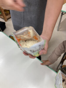 ご飯は、ラップにくるんで各自おにぎりにして食べました。