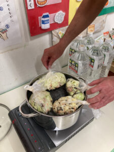 キャベツの即席漬け、蒸しパンも美味しかった様子でモリモリ食べていました。
