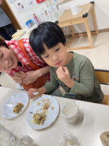「デザートも欲しいよね」と、簡単にできる蒸しパン作り。