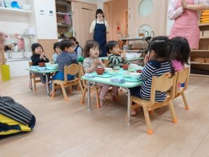 進級してひとつお兄さん、お姉さんになったお友だちは「いただきます。」の挨拶もとっても上手に言えていましたよ。(^^♪