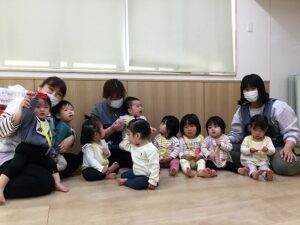 新Atomクラスのお友だち。少しずつ先生やお友だちにも慣れて、楽しい保育園生活を送れるといいね!
