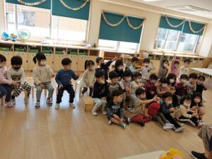 入園したお友だちと、進級したお友だちをお祝いしてメダルの授与をしました。(^^♪