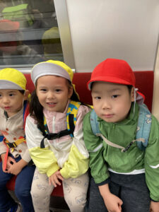 電車の中では外の景色を眺めたり、お友達と顔を見合わせたりしていました。