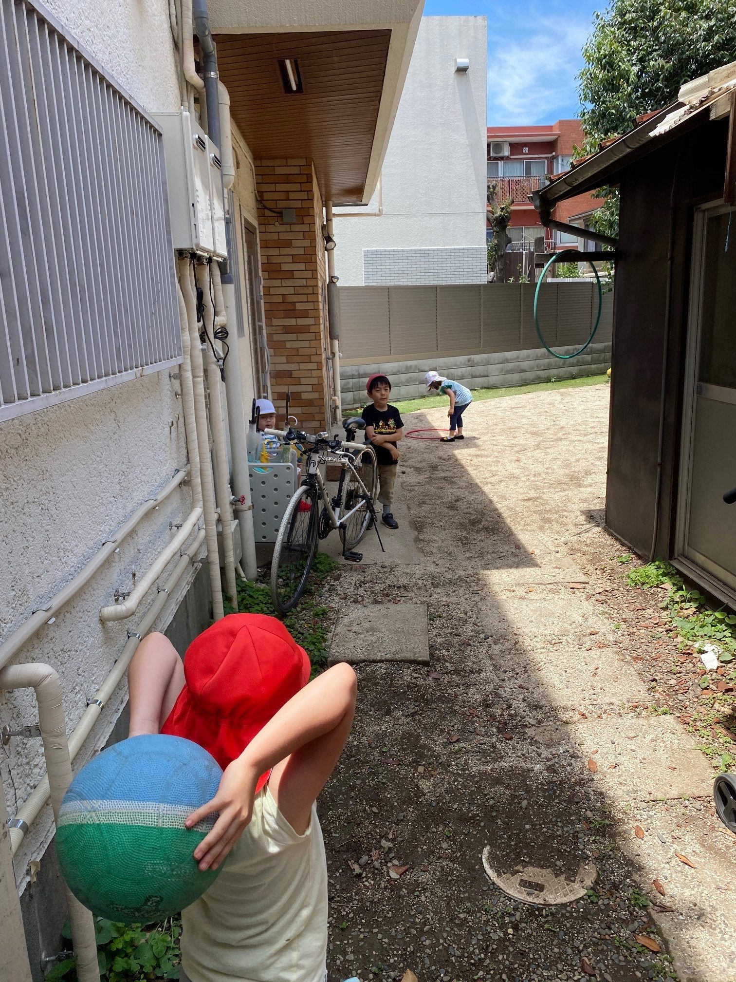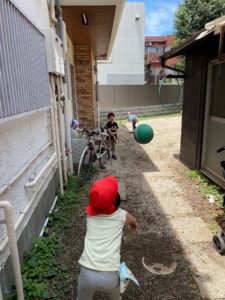 東京が梅雨に入り、昨日・一昨日は雨ばかりの週末でしたが、今日はとても天気がよく中庭で元気に遊べています。