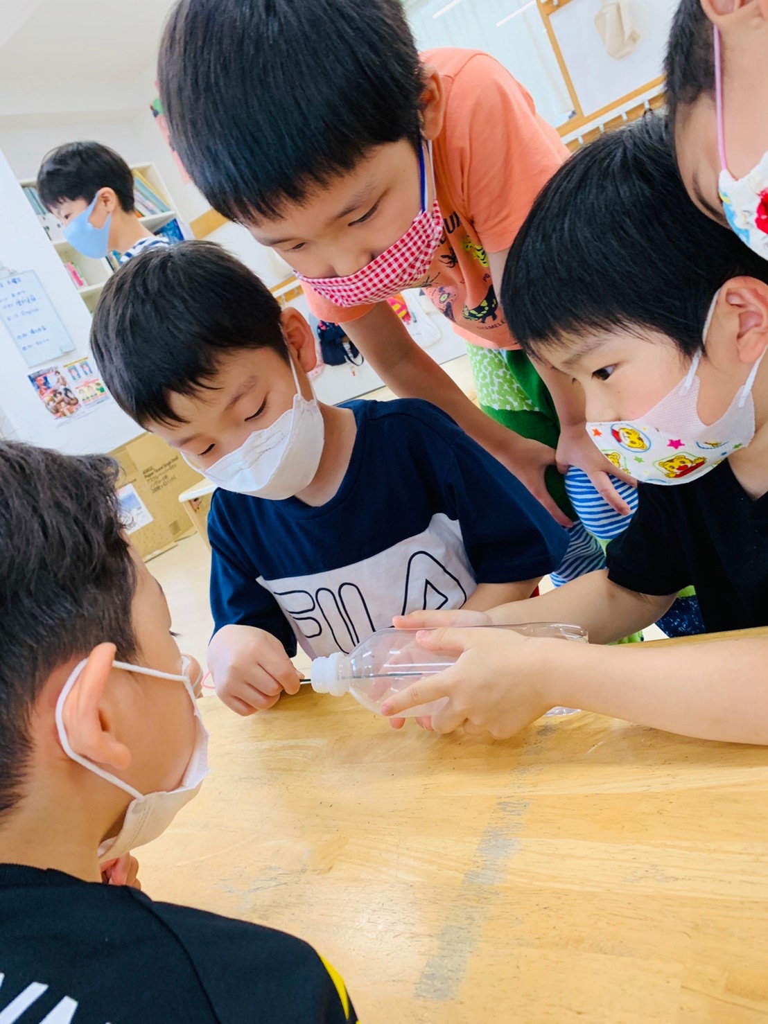 6月は「身近にある物を使って雲を作ってみよう」というテーマでだれでも簡単にできる実験をしました!!