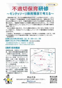 9時~11時30分 「不適切保育研修~モンテッソーリ教育理念で考える~」