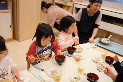 そらクラスのお友だちも真剣な表情で作っていました。(*’▽’)どんな福笑いごはんが完成するのか楽しみです。