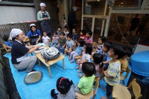 秋刀魚が焼けるまでは紙芝居見て待ちます。