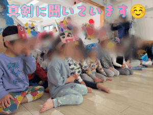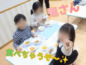 鬼が2人現れましたが負けじと豆を投げている子ども達の姿に頼もしさと成長が感じられ嬉しく思いました😊