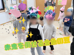 鬼が2人現れましたが負けじと豆を投げている子ども達の姿に頼もしさと成長が感じられ嬉しく思いました😊