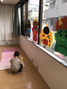 当園は0歳から2歳までなので、節分に関する難しい意味合いなどは形式上ある程度伝えますが、理解は追いつかないと思うので、なるべく怖くならずに、楽しくできるように配慮しました。