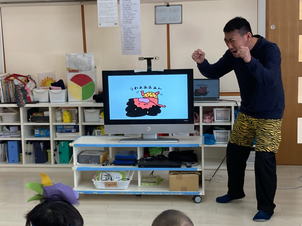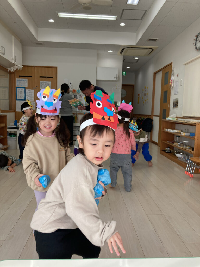 ここ数年、年長児が鬼役になって、各クラスを回っています。