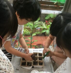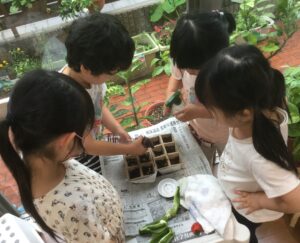 種を蒔いて、芽が出てきたときの「誕生」の喜び、枯れてしまったときの「死」の悲しみ、命の尊さや儚さ、生き物は皆、他の動物や植物の命を頂きながら生きている感謝の気持ちなどは、自然の中での実体験で学ぶことが出来ます。