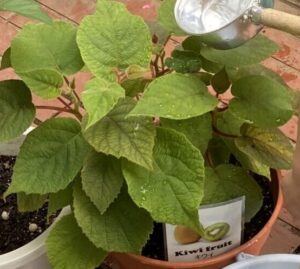 子ども達が水をあげている植物は、キウイフルーツです。